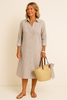Föreställ dig detta: solen mot huden, en mjuk bris och en sommardag där du inte behöver oroa dig om iets. Loes™ är din nya favoritklänning – luftig, smickrande och så enkel att du inte ens behöver tänka när du tar den på. Bara dra på den, matcha med sandaler – och du är redo för stranden, stan eller en kaffe i solen.